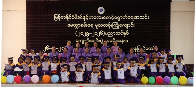 The ceremony was attended the Myanmar Maternal and Child Welfare Association (Central), President and the Central Executive Committee Members, the principal and teachers of “Myit Tar San Yay” preschool, students and parents.